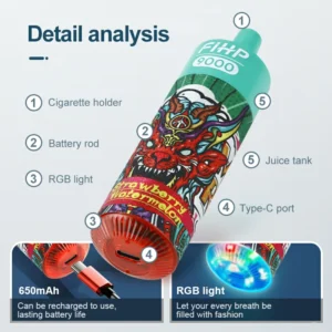 Tutustu vapinginnovaatioiden huipulle FIHP 9000 puhallusta, saatavilla Elfvapingista. Tämä vallankumouksellinen ladattava kertakäyttöinen vape kynä on suunniteltu sekä harrastajille että tukkukauppiaille, jotka etsivät poikkeuksellista suorituskykyä ja käyttömukavuutta. FIHP 9000 Puffs tarjoaa vaikuttavat 9 000 huuhtelua laitetta kohti, ja se takaa pitkän ja hemmottelevan höyrytyskokemuksen. Siinä on kestävä 650 mAh akku ja Type-C ladattava portti luotettavaa ja nopeaa latausta varten.
