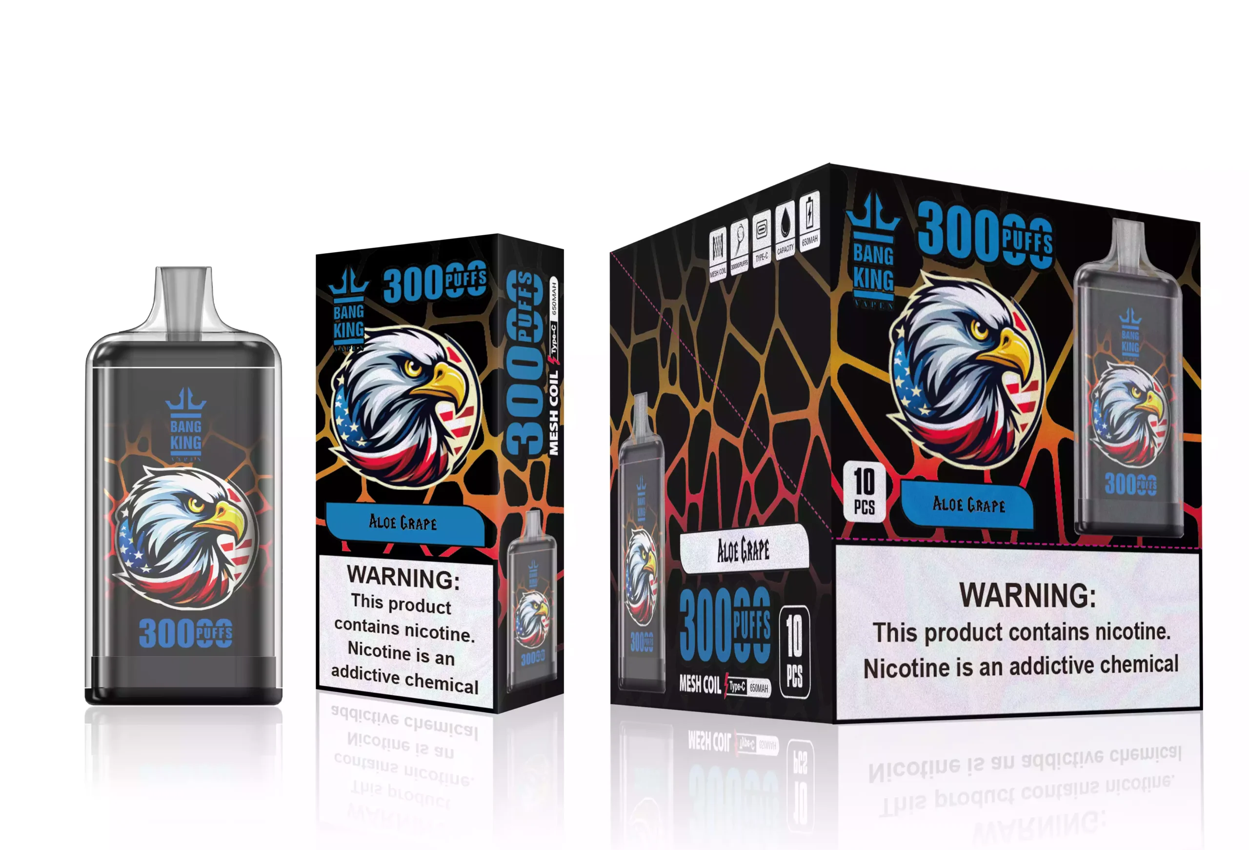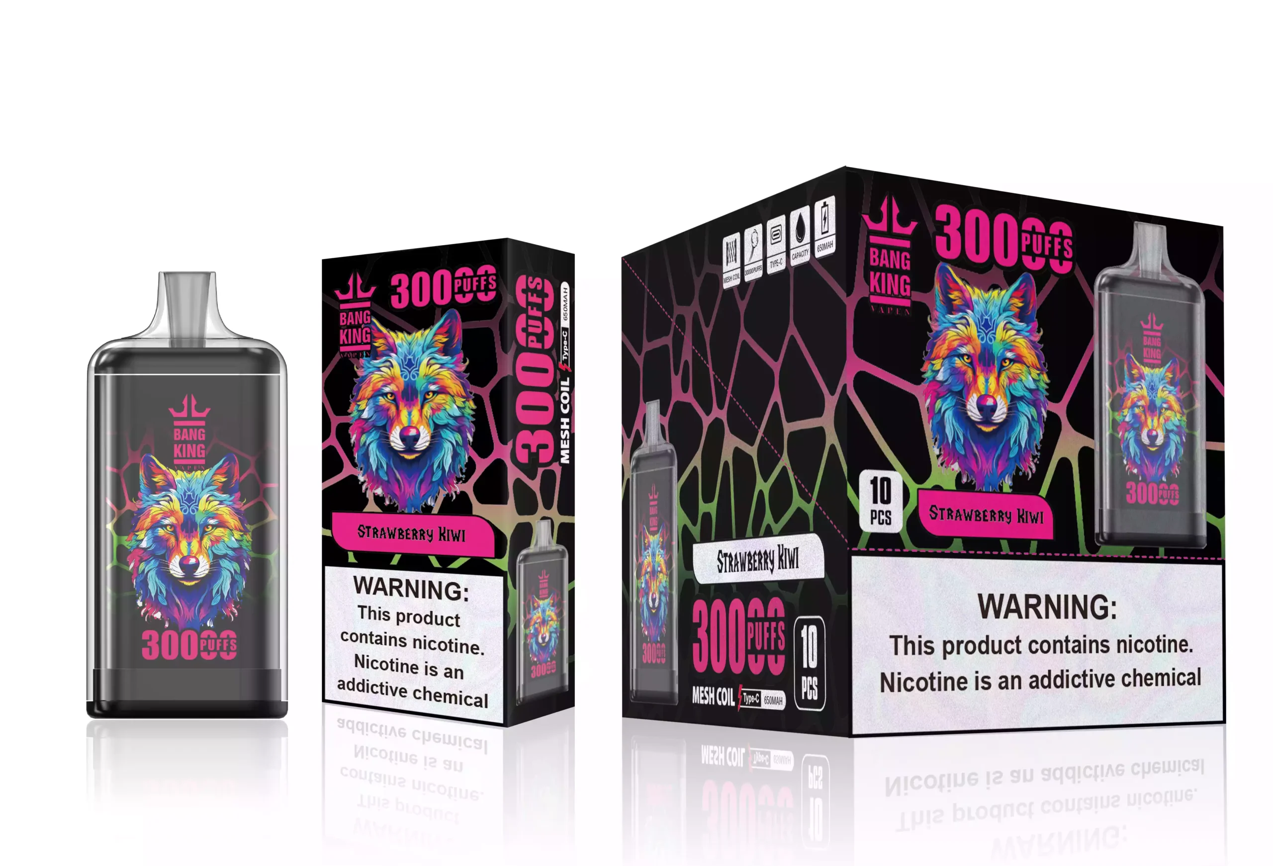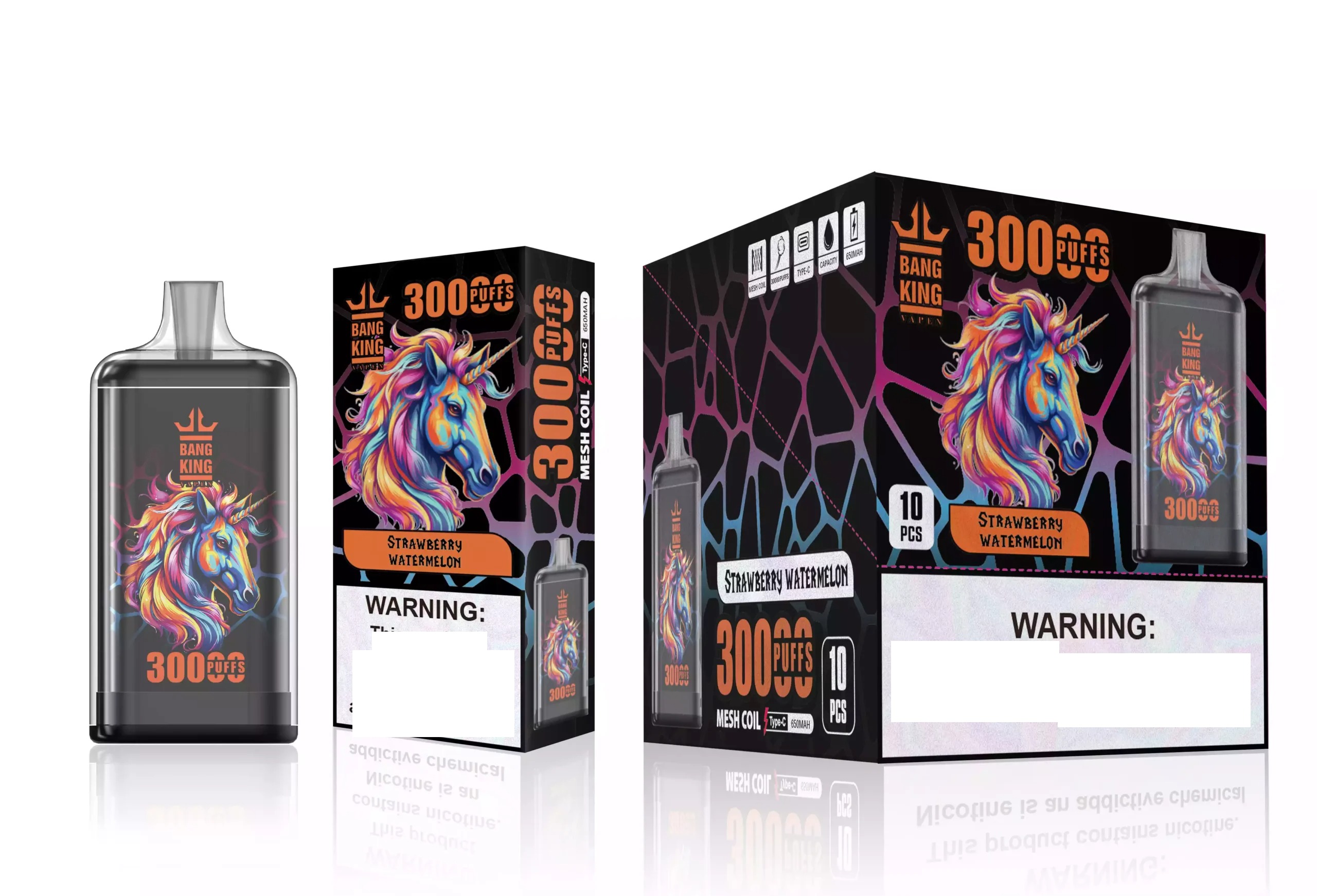 A BANG KING 30K termékcsalád pontosan megfogalmazott érzékszervi élmények széles skáláját kínálja. Minden ízprofilt magas színvonalú aromás vegyületek felhasználásával fejlesztettek ki, amelyek stabilizáltak a magas hőmérsékletű aeroszolosításra, biztosítva, hogy az illat és az íz ezer használat során is élénk maradjon.