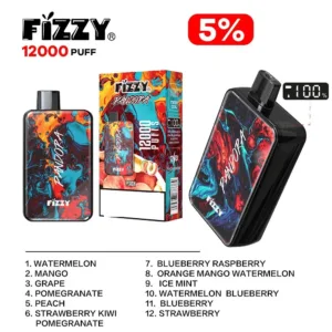 The FIZZY Pandora 12,000 Puffs Rechargeable Disposable Vape is a perfect blend of advanced technology and sleek design. With a powerful 850mAh battery and 20ml Capacity, this device delivers up to 12,000 puffs of various options vapor. Its mesh coil technology ensures rich, consistent taste, while the LCD screen keeps users informed of battery life and e-Capacity levels. Available in tastes like Ice Mint, Pomegranate, and Orange Mango Watermelon, the FIZZY Pandora is designed for vapers who appreciate both power and convenience.