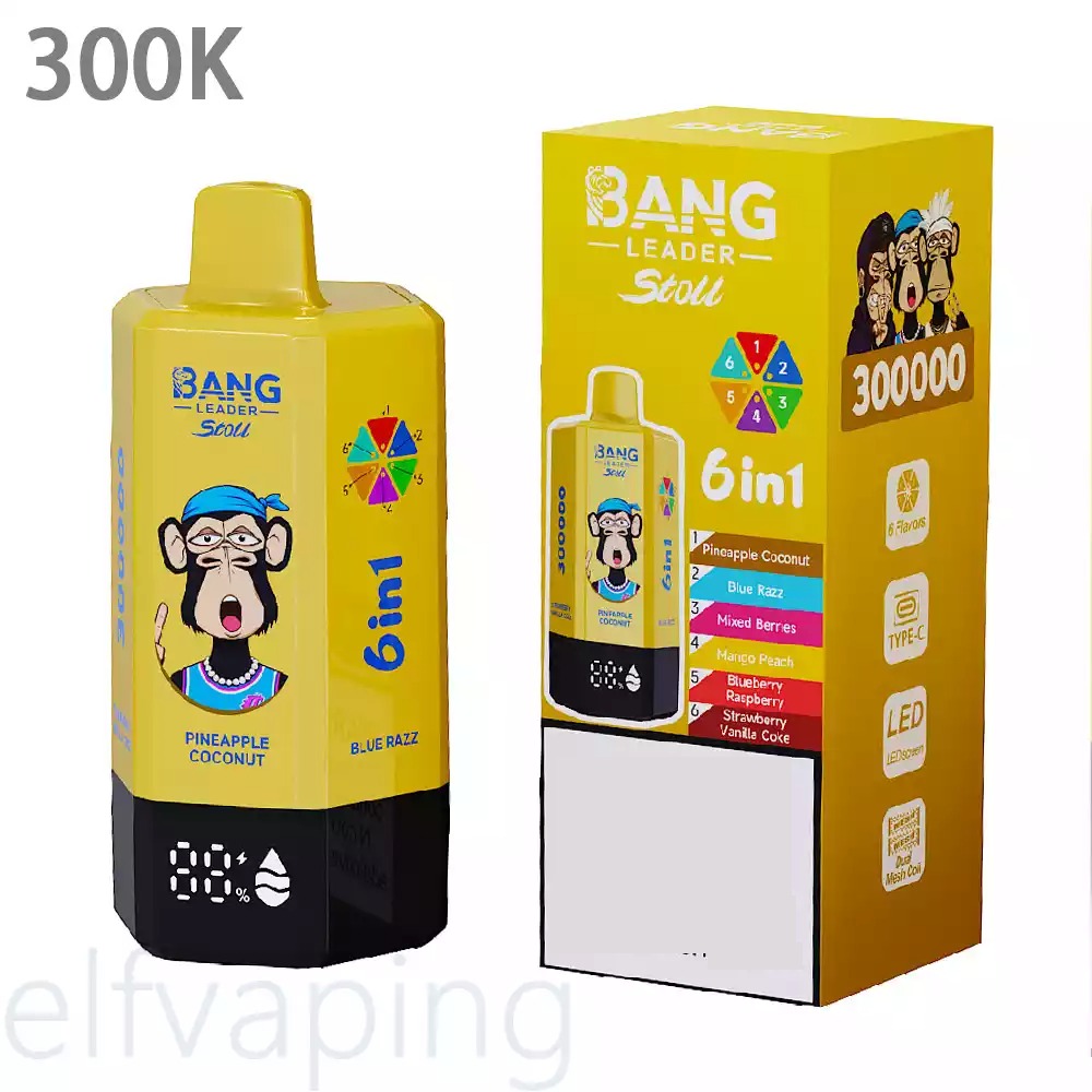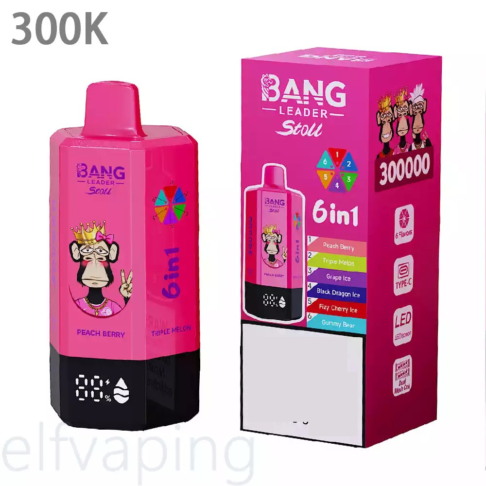 Welcome to Elfvaping, your best friend for wholesale disposable vapes in Europe! Today, we are super excited to show you a device that is changing the game. Meet the BANG LEADER STOLL 300K. It is not just a vape; it is like having six different devices in one big, powerful machine! With a massive 300,000 puffs capacity, the fun almost never ends. 🌩️