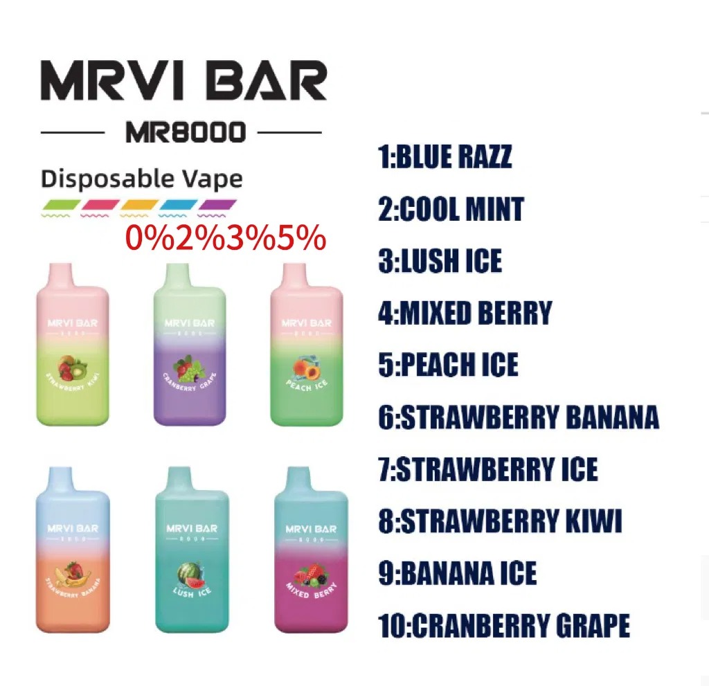 Available in a variety of meticulously crafted tastes, the MRVI Bar MR8000 offers a diverse selection that satisfies every palate. From the refreshing tang of Blue Razz to the cooling sensation of Cool Mint and the fruity richness of Mixed Berry, each taste is designed to elevate the vaping experience. Other popular tastes include Peach Ice, Strawberry Banana, and Cranberry Grape, each offering unique and satisfying taste profiles.