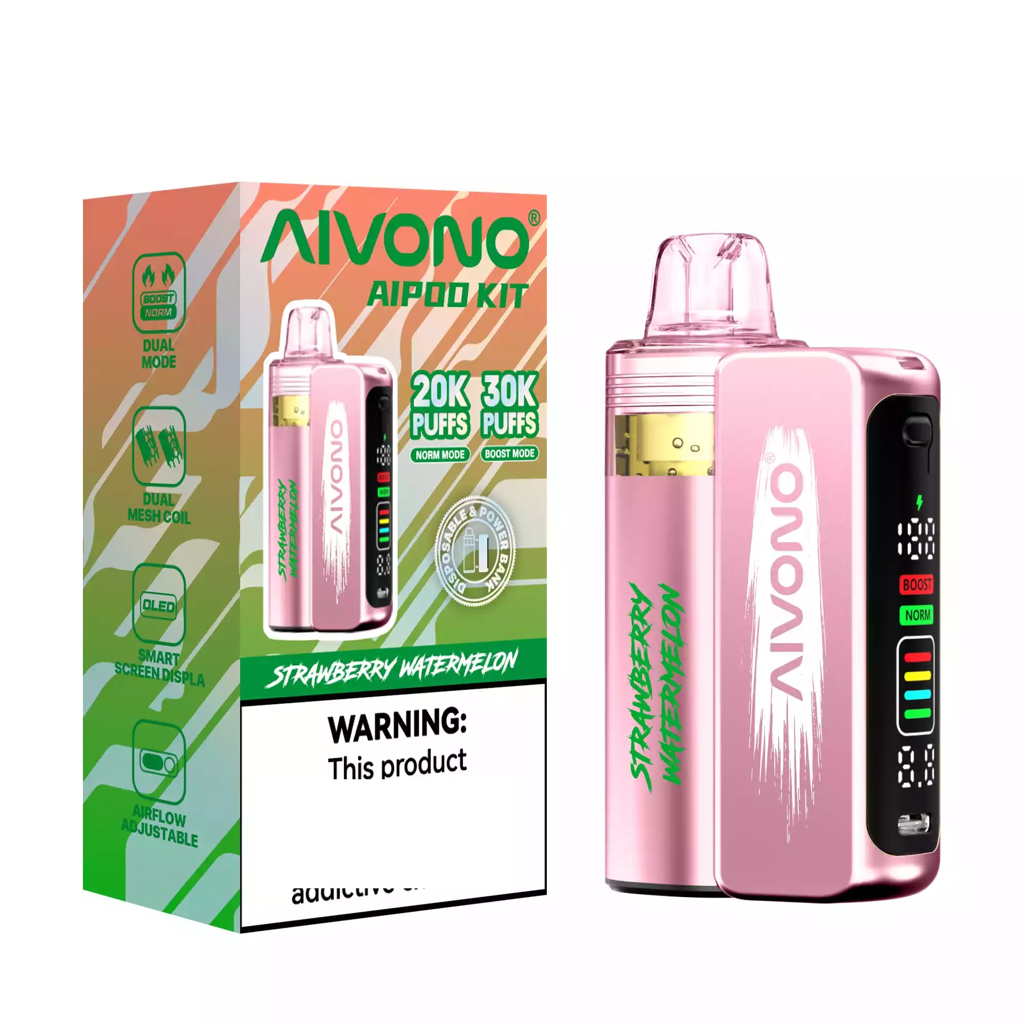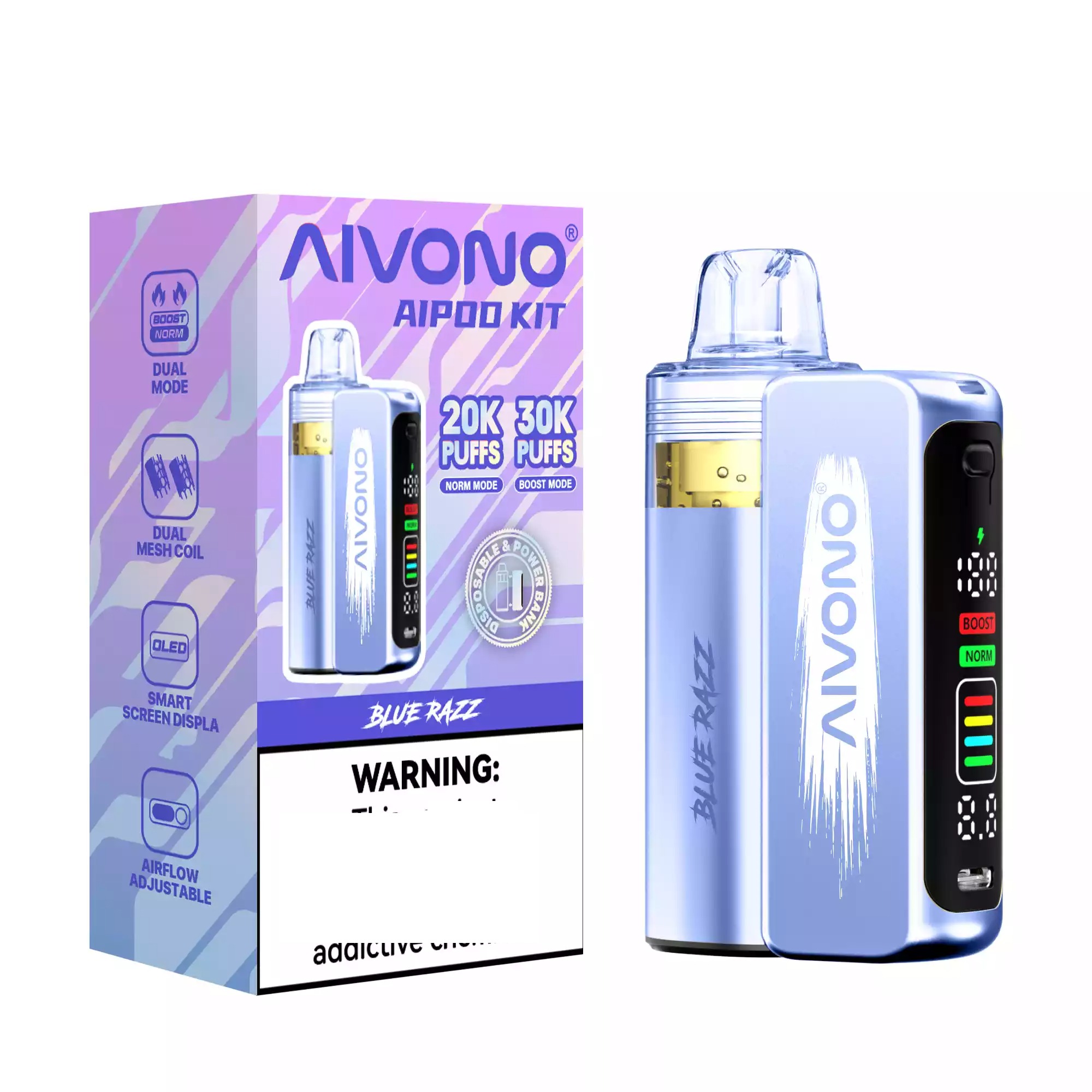 Imaginează-ți că ai un mic prieten robot care îți oferă cele mai bune nori și arome. Acesta este KITUL AIVONO AIM AIPOD 30K! Această incredibilă vape de unică folosință de 30K vine cu un ecran inteligent special care îți spune tot ce trebuie să știi, cum ar fi câtă capacitate a rămas și când să încarci bateria. În plus, poți alege între două moduri super cool: un mod relaxant care îți oferă 30.000 de pufuri de necrezut sau un mod puternic pentru 20.000 de pufuri mai mari și mai puternice! Este alegerea perfectă pentru toată lumea.