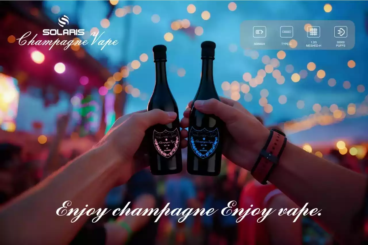 Здравствуйте! Вы ищете одноразовый вейп, который выглядит потрясающе на полке и радует клиентов неделями? SOLARIS Champagne 30K разработан так, чтобы походить на миниатюрную бутылку шампанского класса люкс. Он стильный, уникальный и мощный. Эльфвейпинг, Мы рады предложить этот оптовый продукт нашим партнерам в Европе.